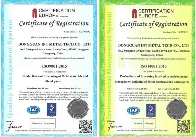 INT Sertifikatları - ISO9001 & ISO14001